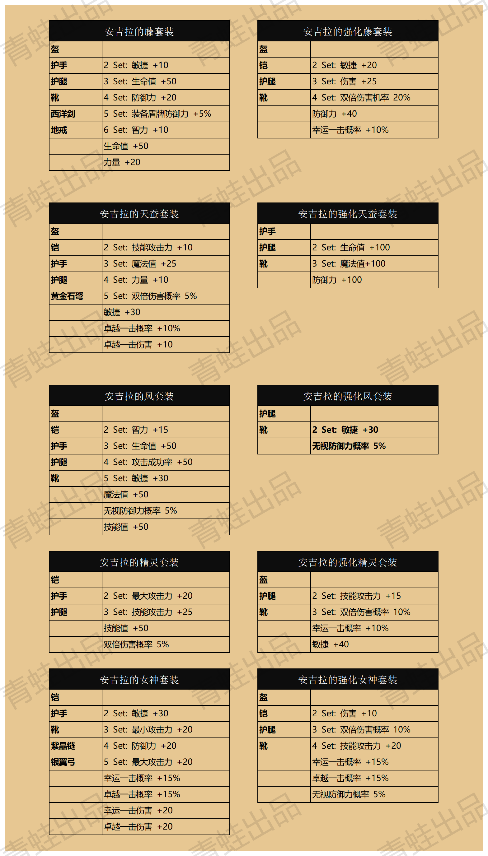 - 安宁池概率掉落:创造宝石、安宁宝箱,随机开出所有普通套装((强化套装在BOSS和周日400以帝国概率掉),(需佩戴+11二代翅膀或任意三代翅膀);