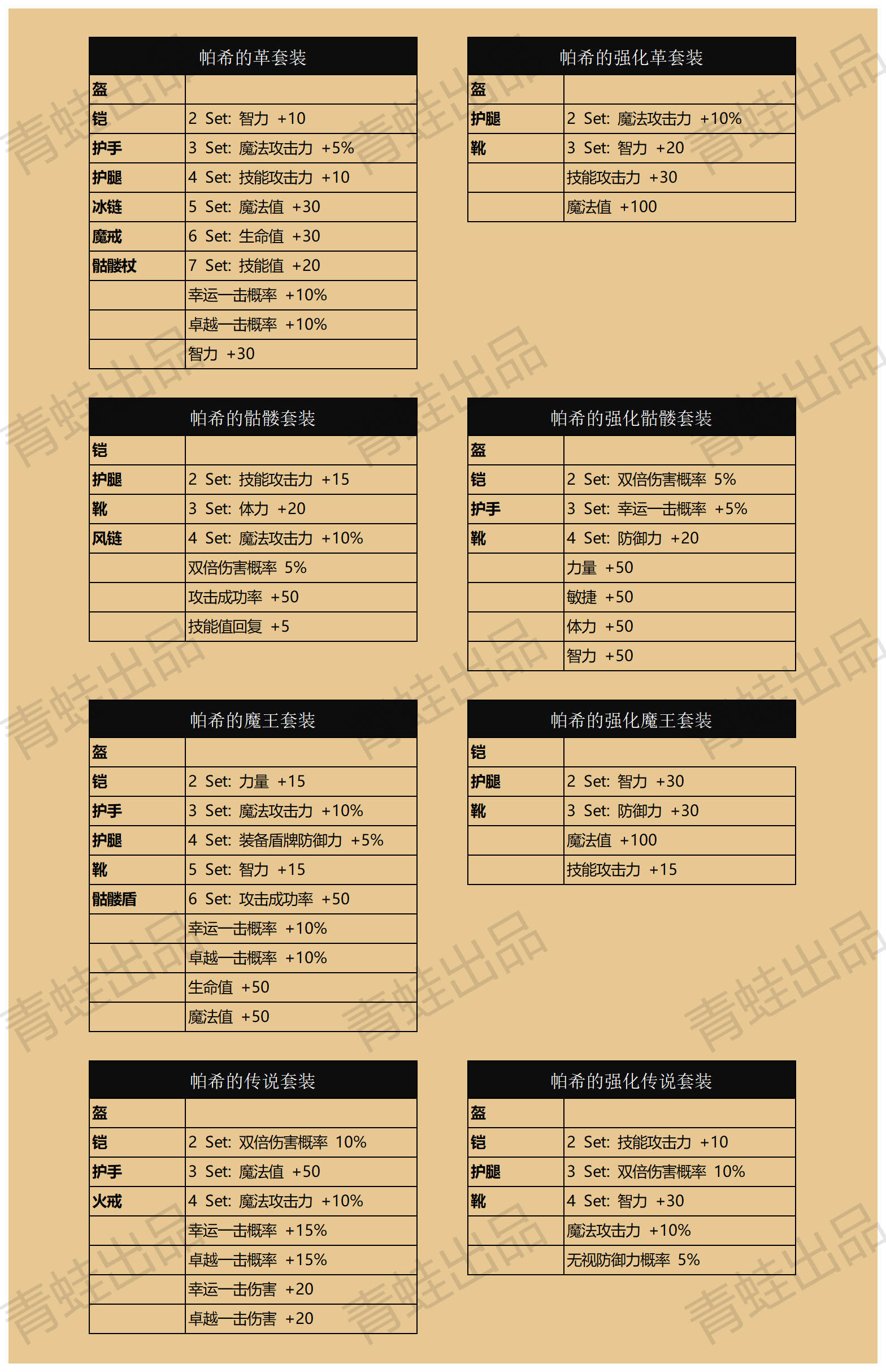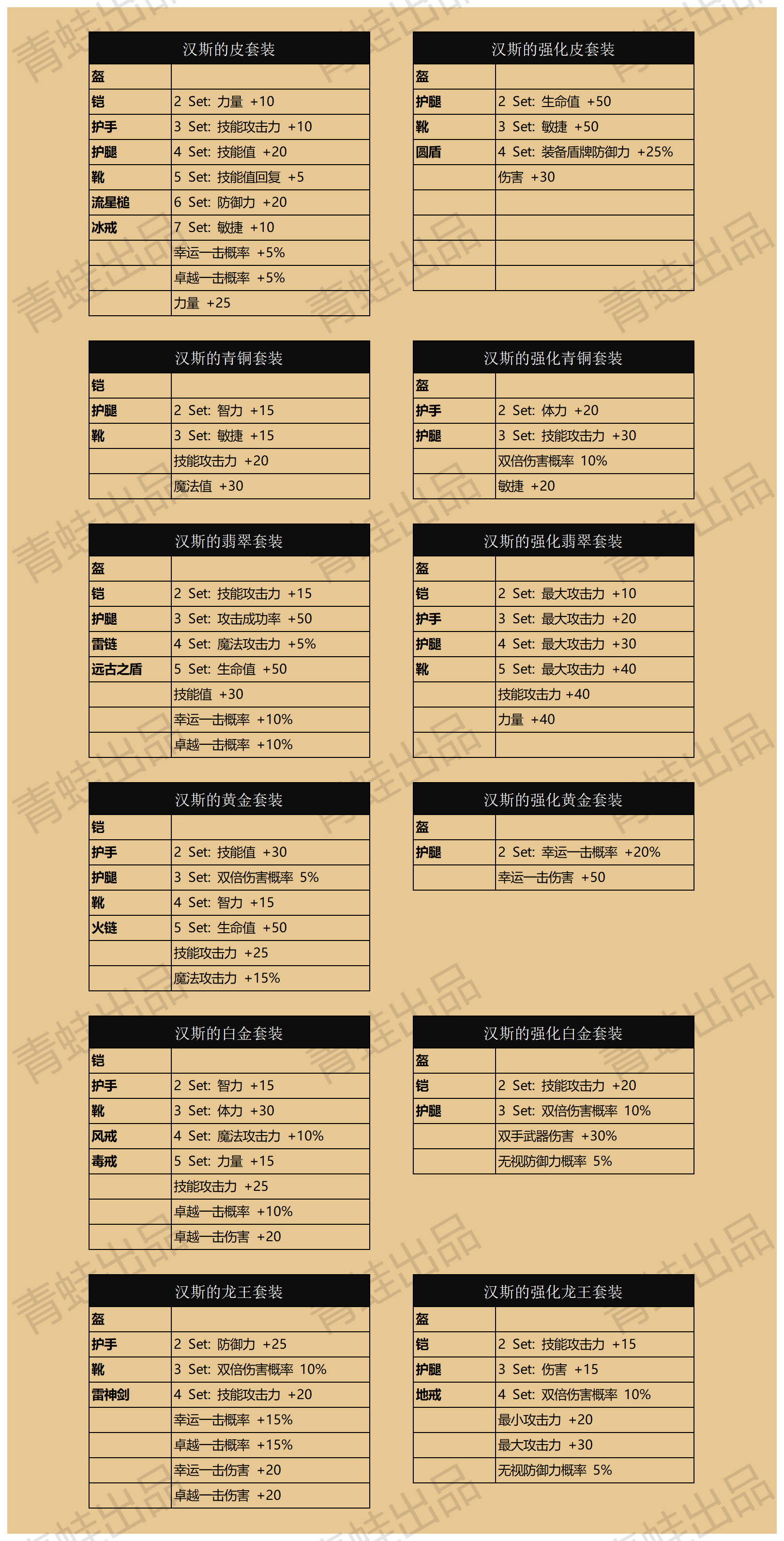 | 盔/铠/腿/手/靴/盾 | 水1+土1+风1 | 防御力 +24 |
